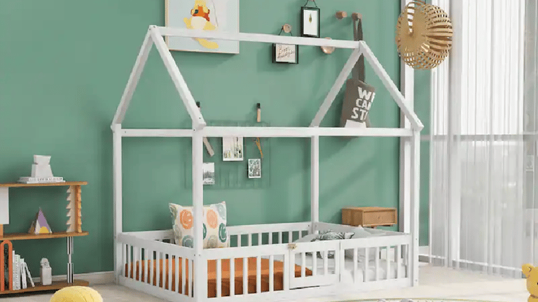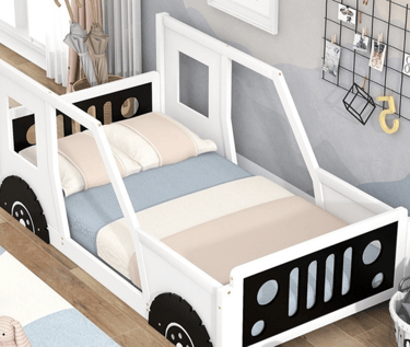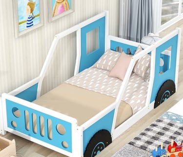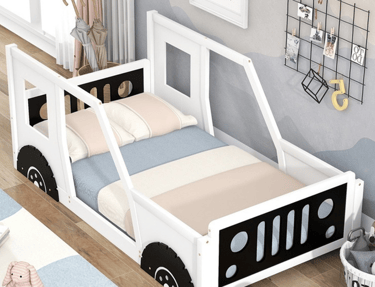 TWIN SIZE CLASSIC CAR-SHAPED PLATFORM BED WITH WHEELS