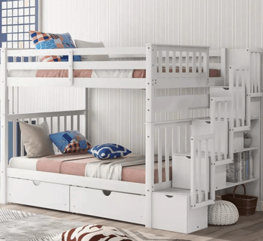 TWIN OVER TWIN BUNKBED WITH SIDE STAIRS AND 4 DRAWER CHEST INSIDE